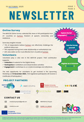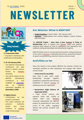 MENTOR – More than a joke: humour in times of dictatorships is a European initiative that examines how humour, satire, and political cartoons have served as tools of resistance and civic expression under dictatorial regimes. By connecting historical and contemporary perspectives, the project seeks to raise awareness of the role of humour in defending democracy, protecting freedom of speech, and preserving collective memory across Europe.