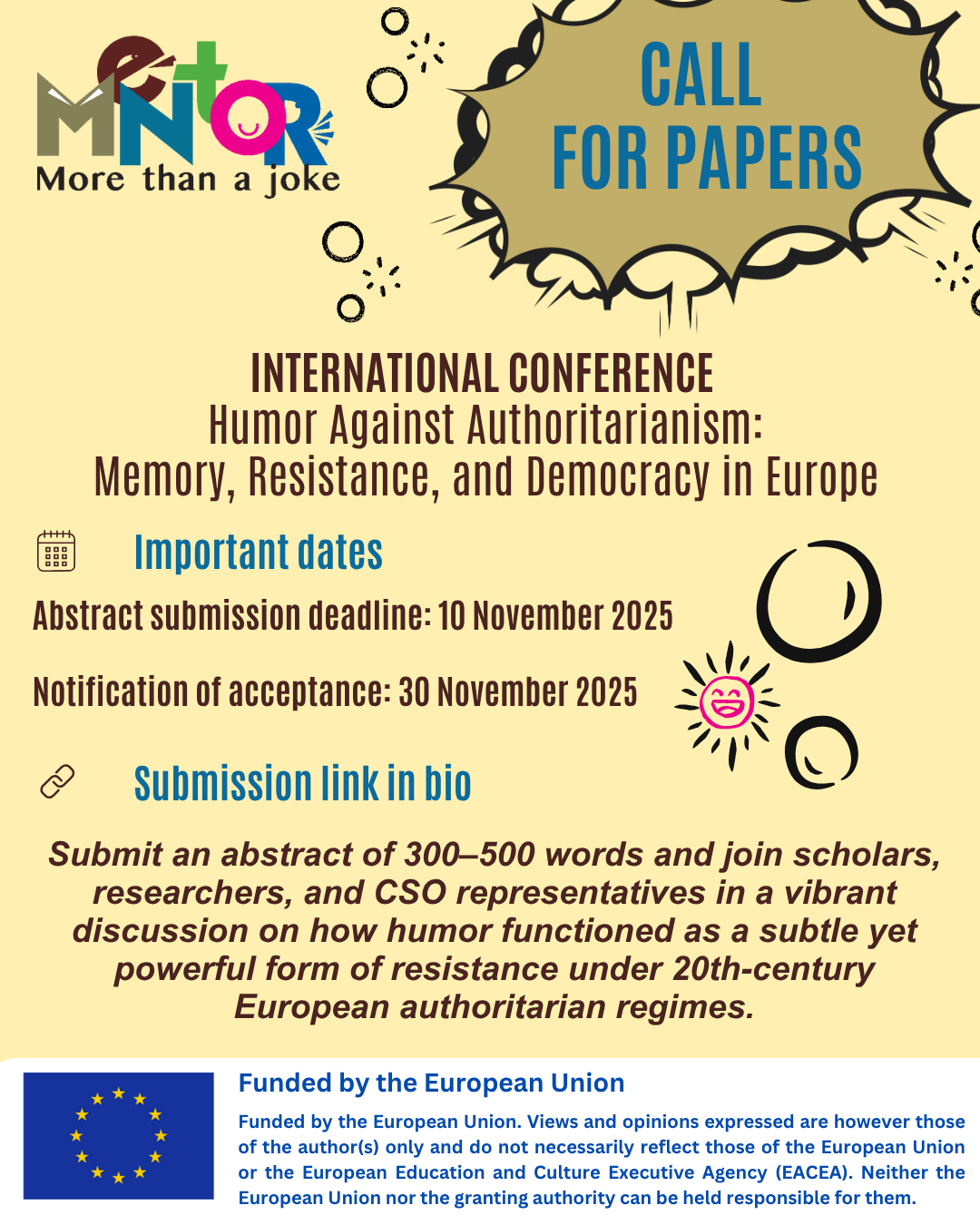 First, the International Conference “Humor Against Authoritarianism: Memory, Resistance, and Democracy in Europe” will take place in February 2026, hosted by Panteion University of Social and Political Sciences in Athens, Greece. Scholars, researchers, civil society representatives, and practitioners are invited to submit original papers examining how humor has served as a means of expression, dissent, and collective memory under authoritarian regimes in 20th-century Europe.